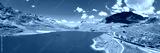 Bernina Pass in Switzerland, aerial view of Lake Bianco, with red train