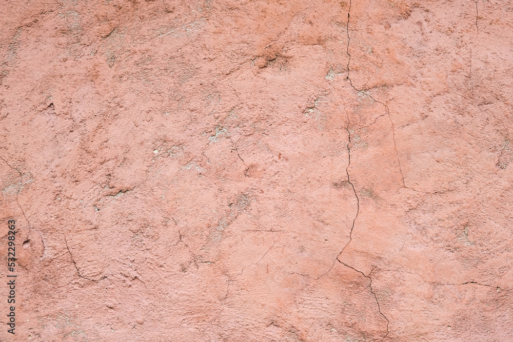 The texture of old painted concrete. The concrete background is dusty pink. The background of a painted wall with cracks.