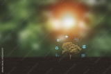 Sustainable renewable energy concept Planting trees to save the environment for the future of the world, communication technology of things, production, inventions reduce global warming energy saving