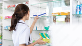 Pharmacist picks up pills on shelf from doctor's prescription, All kinds of generic household drugs and pharmaceutical products on the shelf , Administering medications as prescribed by the doctor.