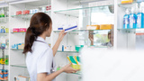 Pharmacist picks up pills on shelf from doctor's prescription, All kinds of generic household drugs and pharmaceutical products on the shelf , Administering medications as prescribed by the doctor.