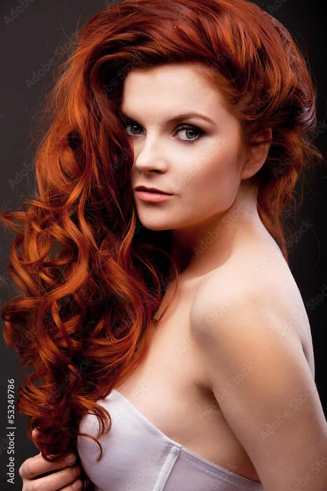Beautiful woman with curly hairstyle