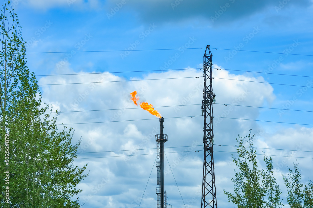 A torch burning associated gas. Gorenje surplus during production in the gas and oil industry.