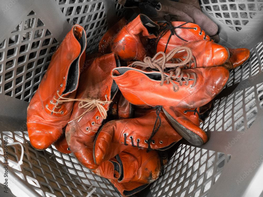 Old red cancan shoes