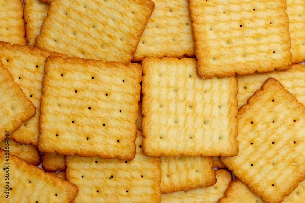Snack concept, Stacking of salty crackers or biscuits as a background