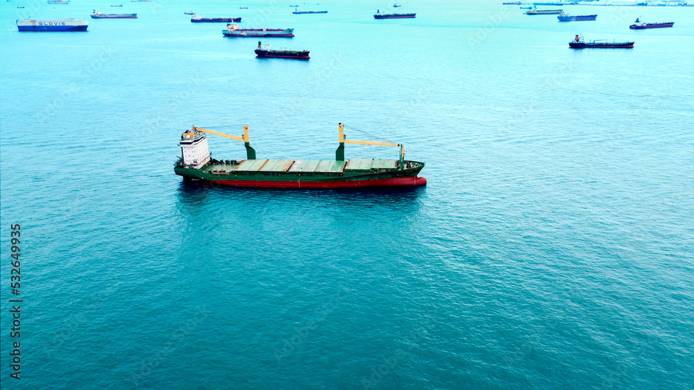 Aerial view of cargo ship sailing on the sea