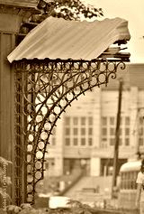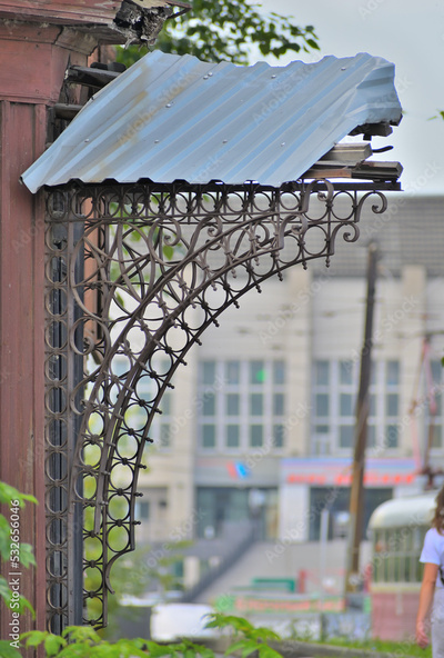 Canopy over the porch in an abandoned house on an autumn day