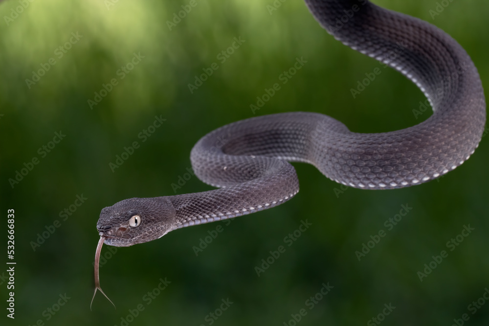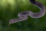 Black mangrove pit Viper closeup on branch, Black solid Pit Viper Closeup on branch