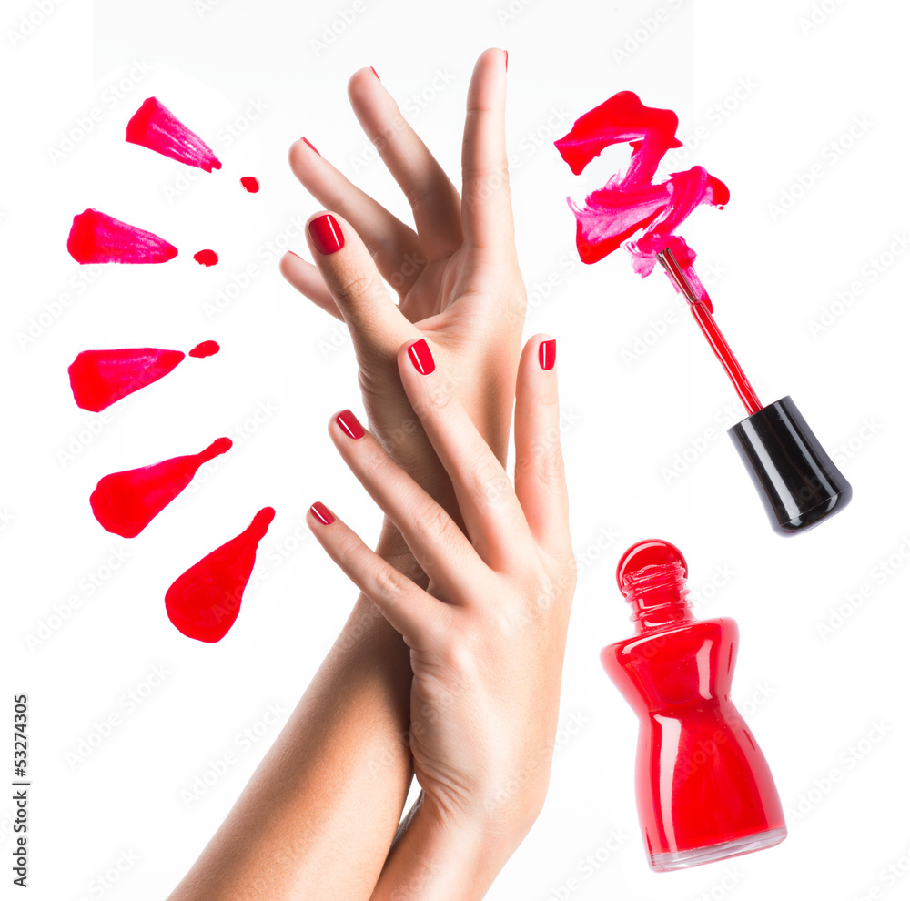 Beautiful female hands with red manicure