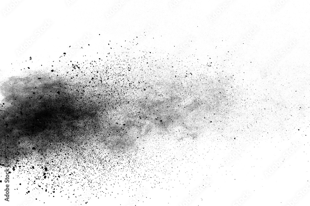 abstract powder splatted background. Black powder explosion on white background. Colored cloud. Colorful dust explode. Paint Holi.
