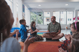 Reading time in elementary school or kindergarten, teacher reading a book to kids in elementary school or kindergaden. Selective focus
