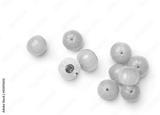 Flat lay (top view) of Fresh Indian gooseberry fruits with cut in half isolated on white background. Clipping path.