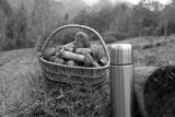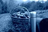 freshly picked of Leccinum scabrum or rough-stemmed bolete, birch bolete mushrooms in wicker basket.