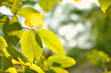Yellow leaves on trees in autumn park. Abstraction of colorful autumn leaves.