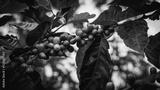 Arabicas Coffee Bean on Coffee tree at Doi Chaang in Thailand, Coffee bean Single origin words class specialty.vintage nature background,