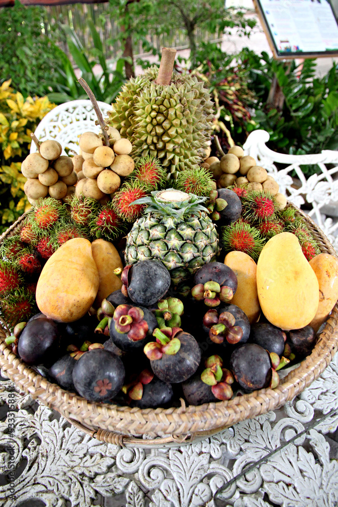 Many of fruits in the basket.