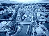 Aerial view of the Limehouse, a regenerated former dockland area at the River Thames in London