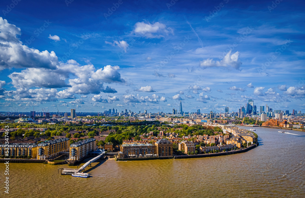 Panoramic view of the City of London, the historic centre and the primary central business district
