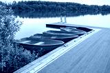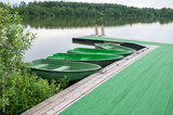 Wooden row boats are moored at the hotel pier for eco-friendly recreation and relaxation