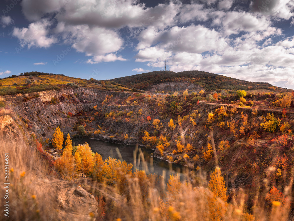 Nice mine pit lake at Tarcal, Hungary in autumn
