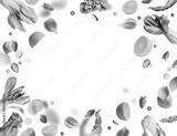 Frame of various flying or falling summer fruits, berries and vegetables on transparent background. Healthy food. Detox and dieting concept