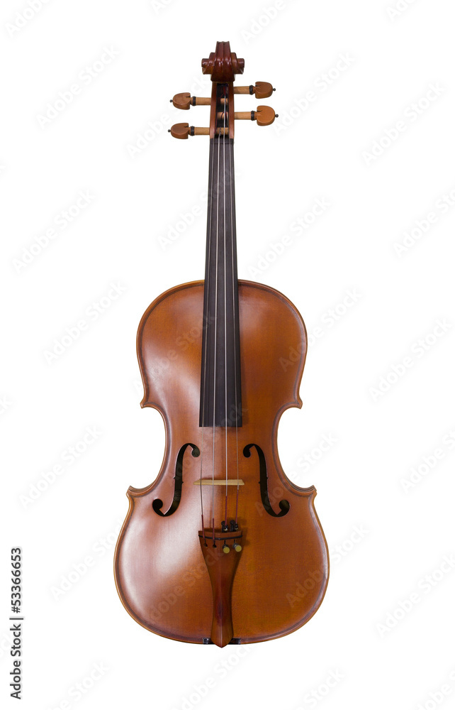 Classical shape wood violin instrument on white background
