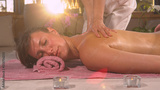 CLOSE UP: Young lady relaxing while having a pleasant neck and shoulder massage