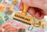Gasumlage auf Stempel Symbolbild Gesetz der Bundesregierung als Business Konzept