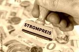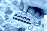 Strompreis auf Stempel Symbolbild Kosten der Energieversorgung mit Strom als Business Konzept