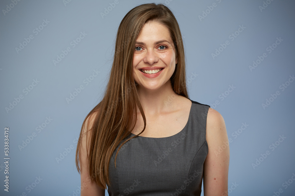 Smiling business woman with amazing wide toothy smile. isolated portrait.