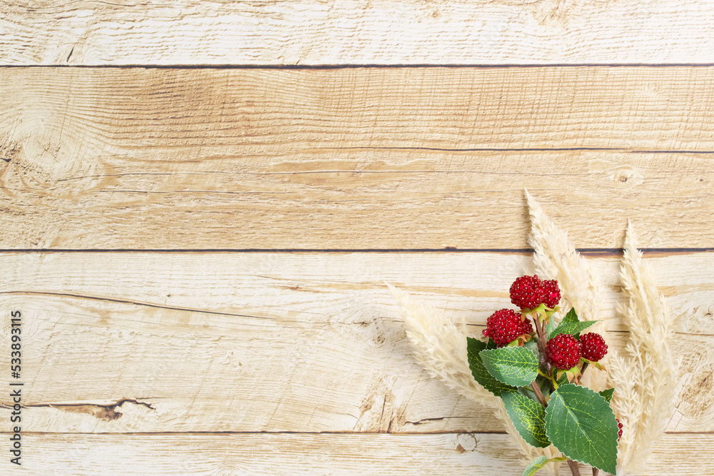 木目調のボタニカルフレーム|ラズベリー