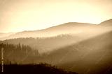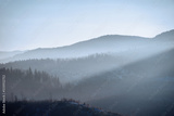 winter landscape with mountains on horizon. fir trees covered with snow. beautiful winter landscape. Carpatian mountains