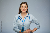 Woman doctor in blue medical uniform. Isolated portrait of female medical worker.