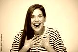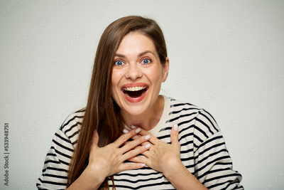 Portrait of surprising excited young woman.