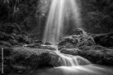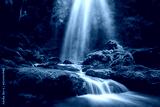 Natural waterfall with rocks and green moss