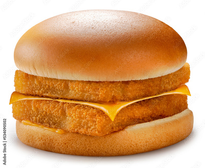 Crispy Fish Hamburger with cheese isolated on white background, Fish Hamburger on white With work path.