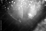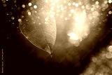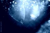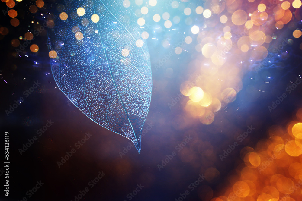 Transparent skeleton leaves over glitter black abstract background