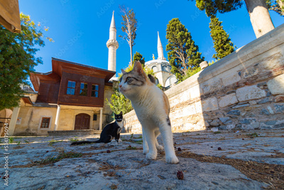 Stray cats and Atik Valide Mosque in Uskudar Istanbul