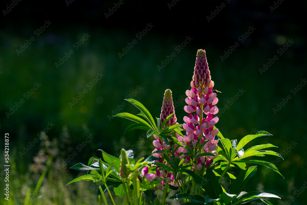 Łubin trwały (Lupinus polyphyllus L.) roślina z rodziny bobowatych, różowy kwiat, zapylanie.