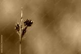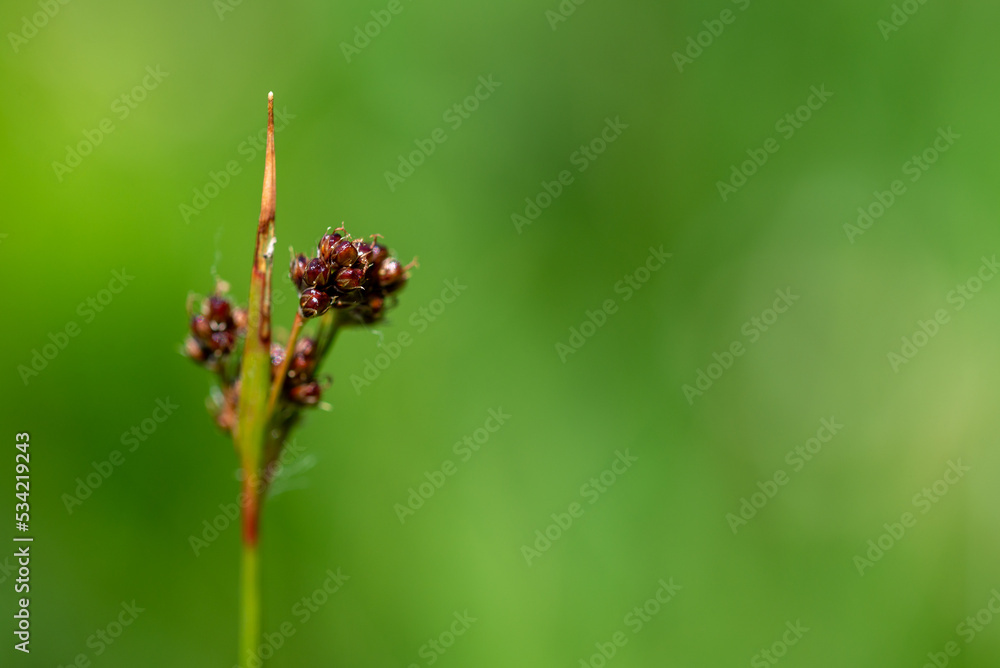 Pojedyncze źdźbło trawy na rozmytym zielonym tle.
