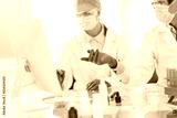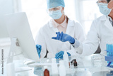 scientists discussing the results of research in a modern laboratory.