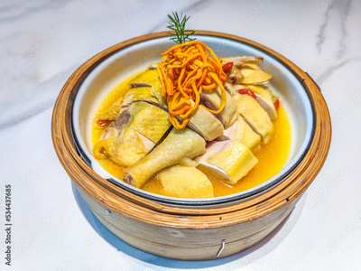 Dish up the steamed chicken