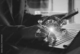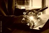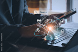 Data Search Technology Search Engine Optimization. Business people are searching for information in digital databases, search jobs, apply online jobs, manage big data bases, business information.