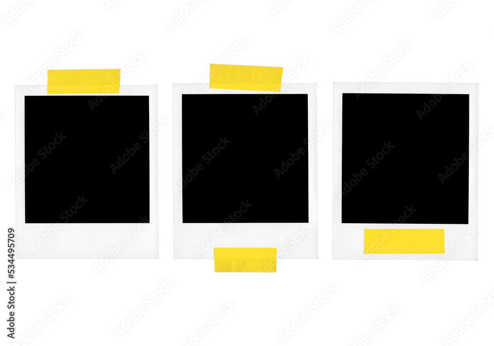 blank polaroid photo frames with tape on removed background, isolated, png file