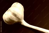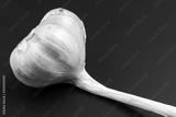 Un mazzetto d'aglio fotografato con un riflesso in bianco e nero