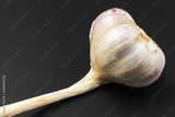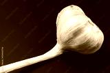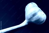 Una cabeza de ajo fotografiada contra un fondo oscuro