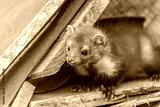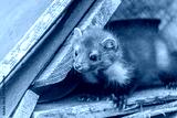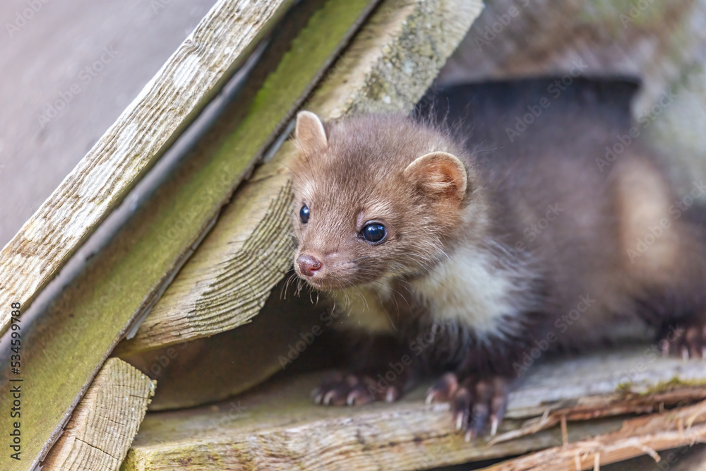 Head of cute young marten posing closeup. Horizontally.