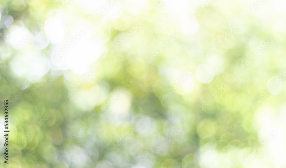 Fresh nature green bokeh lights abstract background from nature forest out of focus. Blur park with bokeh light, nature, garden, spring and summer season. Blurred image of the natural green background
