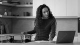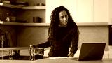Arabian woman mother cooking lunch meal healthy food in modern kitchen writing internet recipe using helpful cookery website on laptop cookbook menu app watching online tutorial culinary video at home