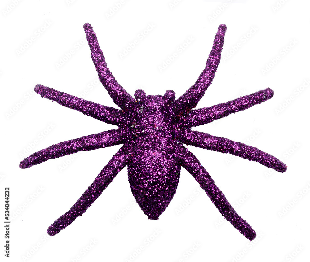 Glitter Purple Spider Halloween Decoration Isolated on White Background